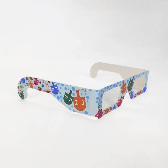 Slip these holographic glasses on and watch as ordinary lights transform into playful dreidels. Perfect for gazing at stars, street lamps, or your festive menorah, these glasses bring a unique and fun twist to your holiday celebrations. A delightful accessory for all ages, they make an excellent gift for kids and a festive addition to your Chanukah festivities!