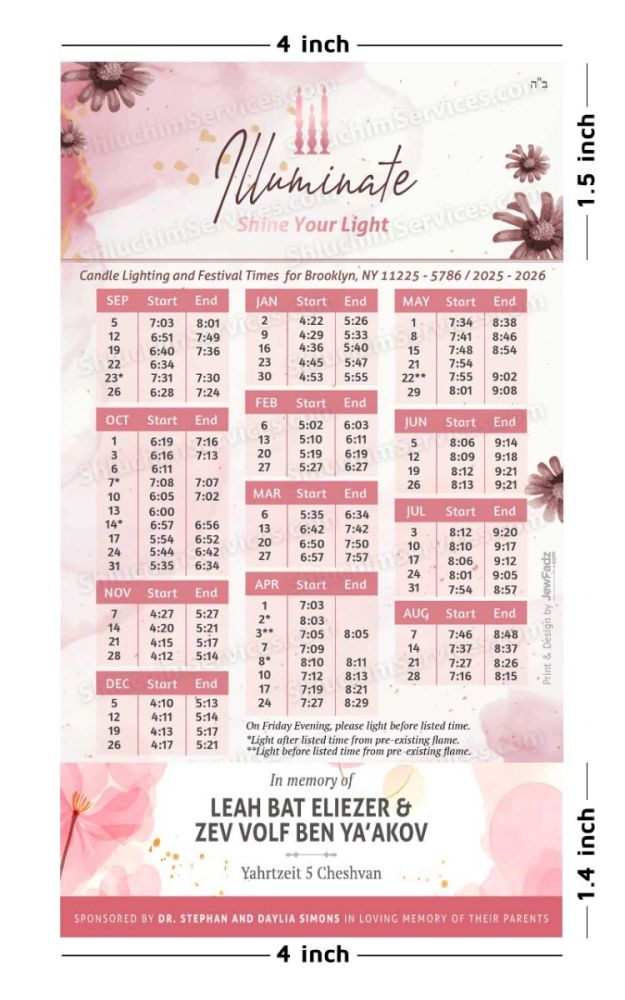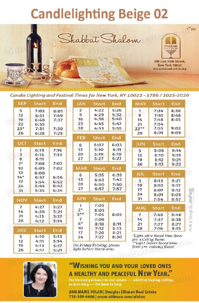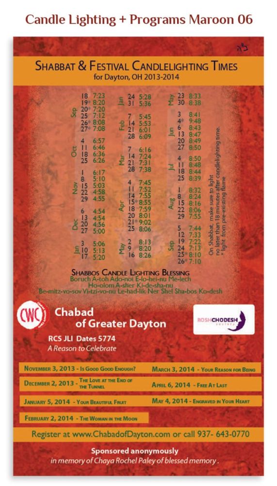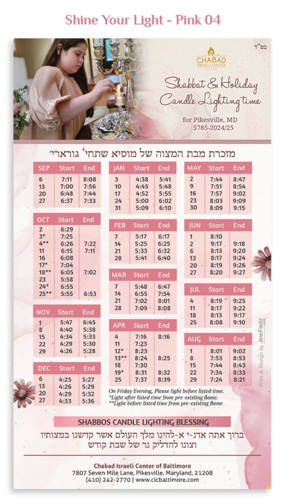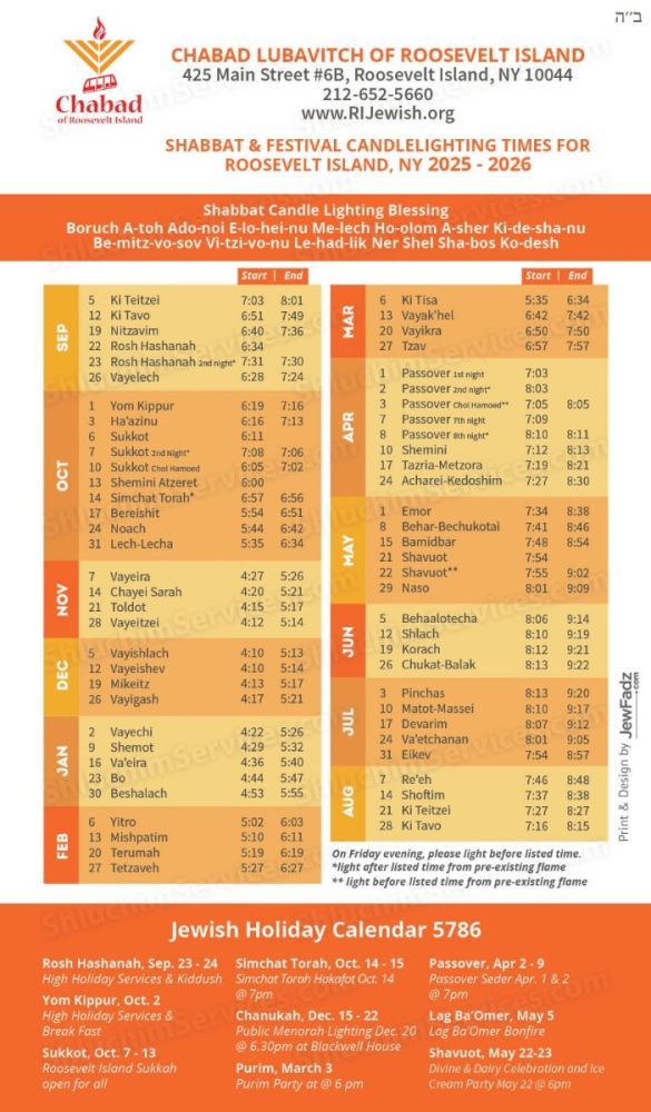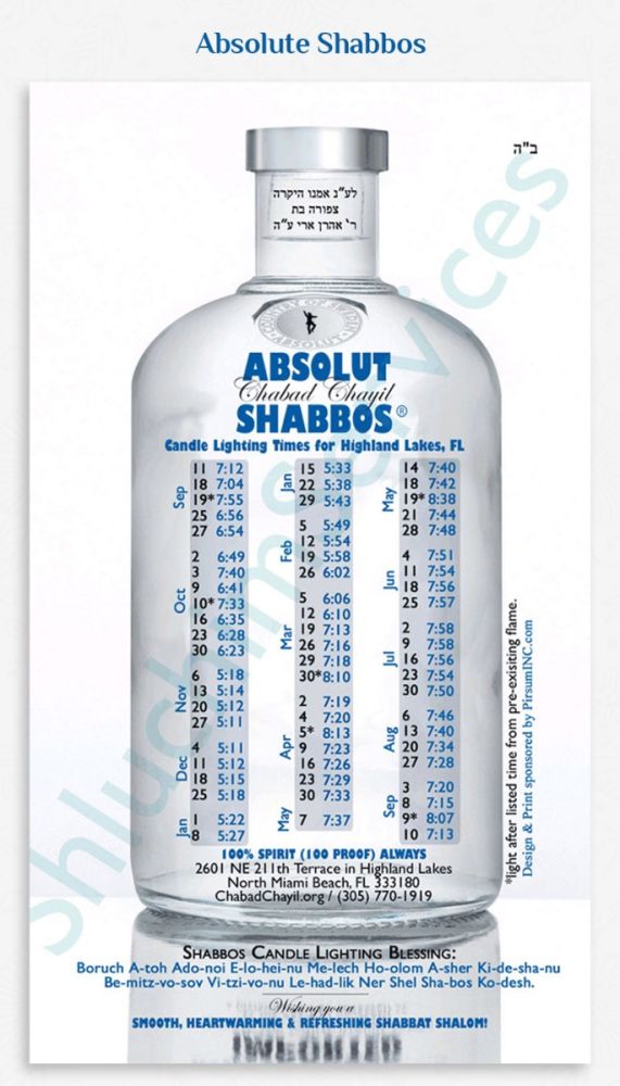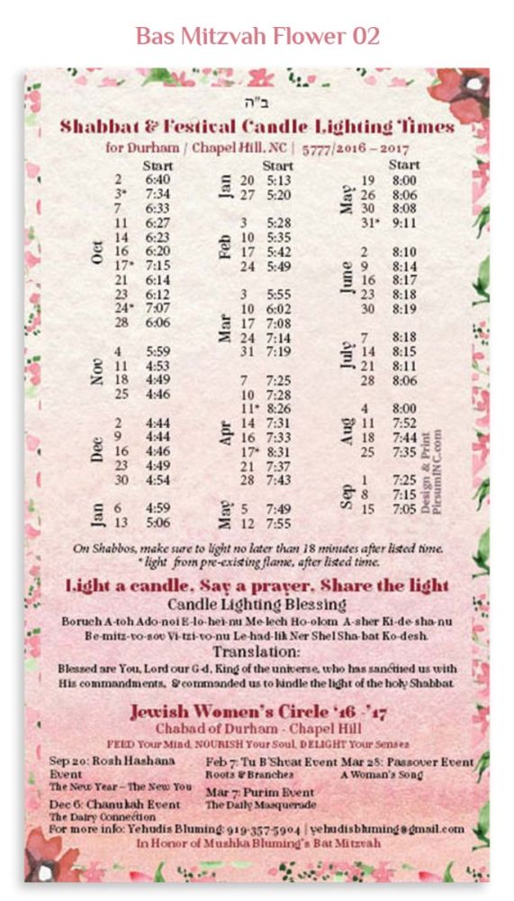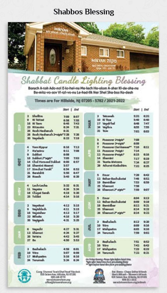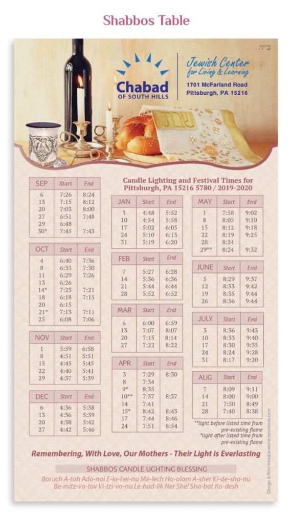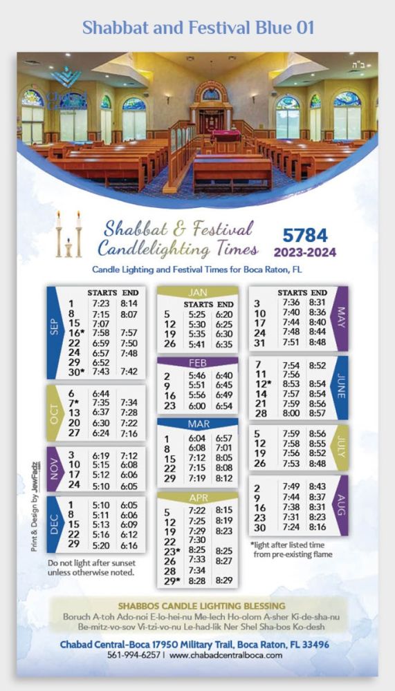 - Zmanim (times) based on your zip code, with a proof sent for approval. Please note: We use Chabad.org and your zip code to input your times. Nothing is required from you beyond your zip codes.