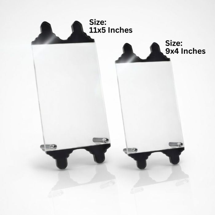 | Acrylic Torah Plaque - without Engraving (Size: 9x4 inches) | The items is bundled as Packs of 50, Case Quantity of 50. | The Weight for each bundle is 41.8 lbs for the 50 Pack, 41.8 lbs for the case. | The Dimensions is 14.5 L x 10.2 W x 28 H inches for the case. |