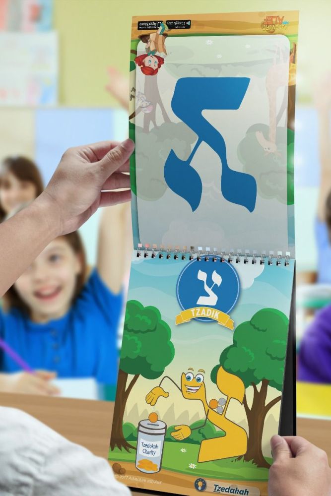 Each page features a bright, full-color version of the Adventure with Alef cards, enlarged for classroom visibility. The self-standing format is ideal for group learning and adds a fun, decorative element to your Judaic classroom environment.