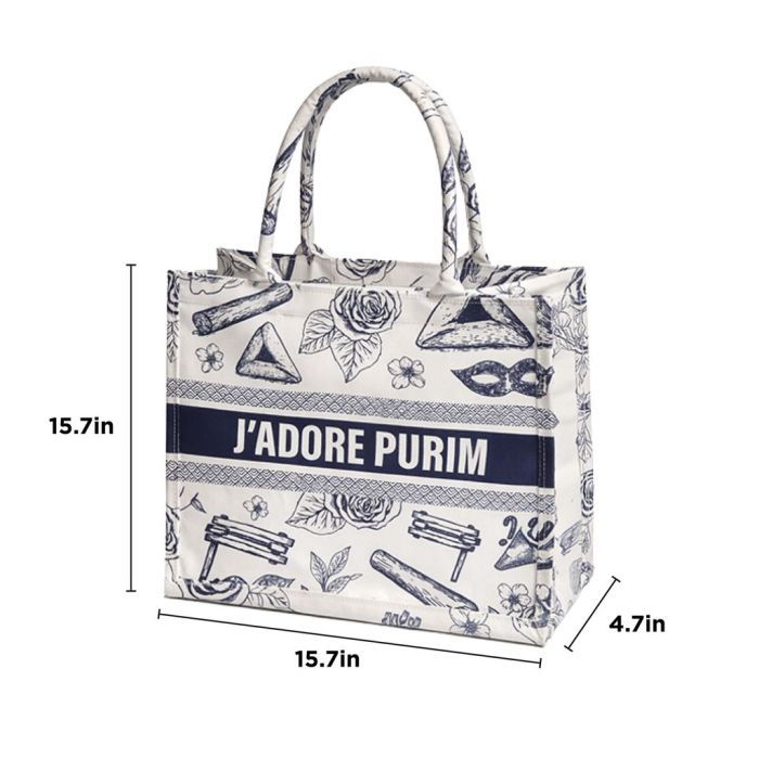 Blue Cotton Canvas J'adore Purim Tote Bags - COMING SOON!