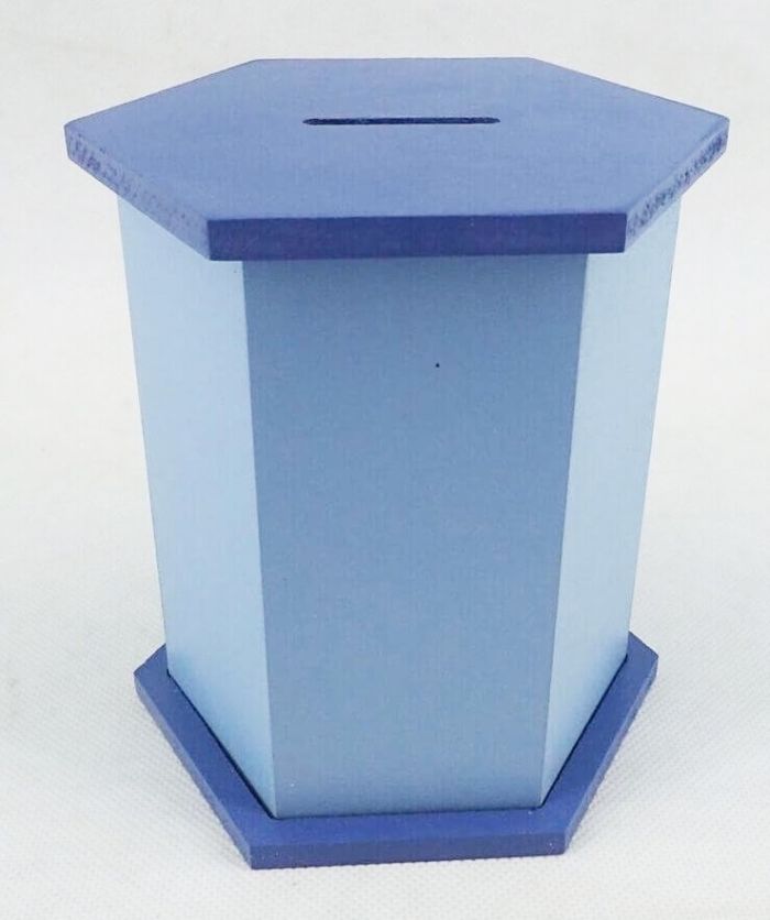 - Wooden piece on bottom created to easily customize with a child's name, following the Rebbes horaa that each child have there very own pushka.