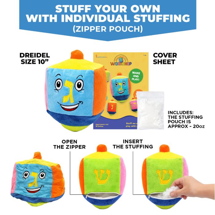 Build Your Own Plush Dreidel - Larger 10" with individual Stuffing - YOM TOV FRIENDLY