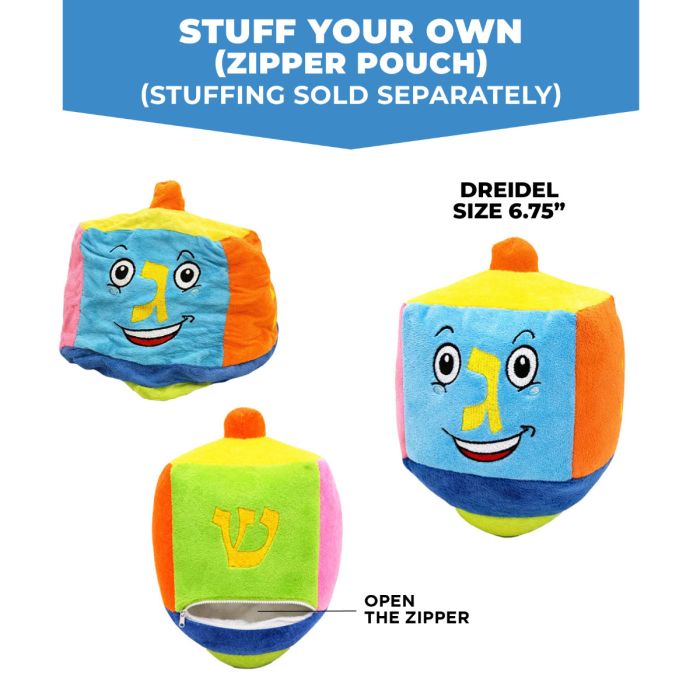 Build Your Own Plush Dreidel This Build Your Own Plush Dreidel is great for - Hebrew School / Preschool / Camp - Chanukah unit. - Chanukah Wonderland - Chanukah Menorah Lighting - Chanukah Party - Chanukah Gift Ages: Size: Material: How to Complete: Fill with stuffing, and just zipper it up!