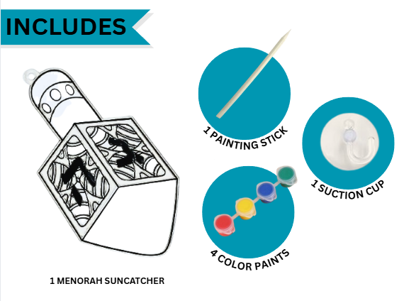 Click here to view our matching Menorah Suncatcher Painting Kit — perfect for pairing with Dreidel suncatchers in your Chanukah programs.