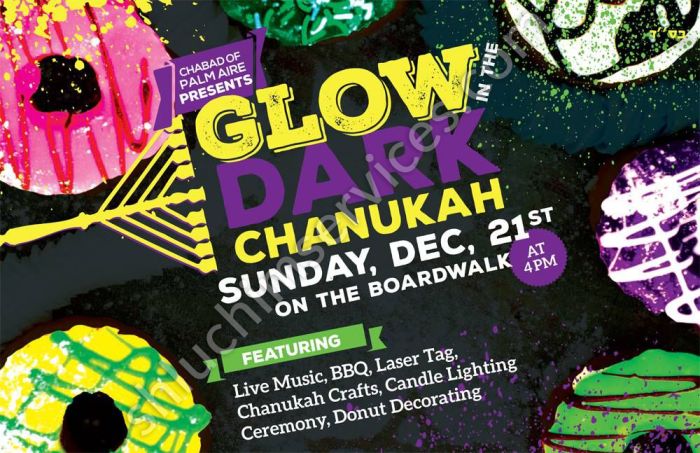 Postcard design for your glow in the dark Chanukah event.