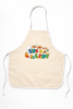These aprons are washable polyester, and are pre-printed with a "Kids in the Kitchen" logo + artwork.