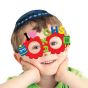 Step 1: The two round white circles you see are double sided adhesives. Peel the sticker and place on the Plastic glasses.