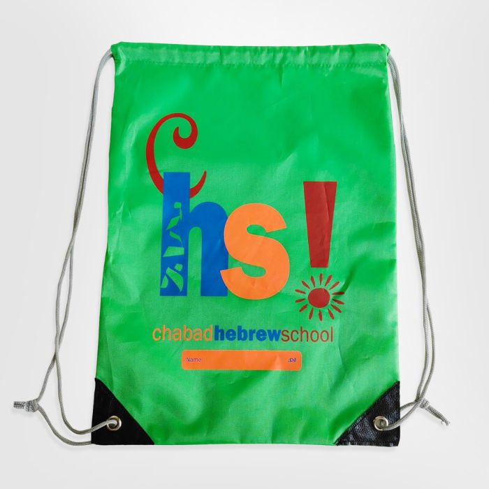 CHS Drawstring Backpack – Chabad Hebrew School bag Green