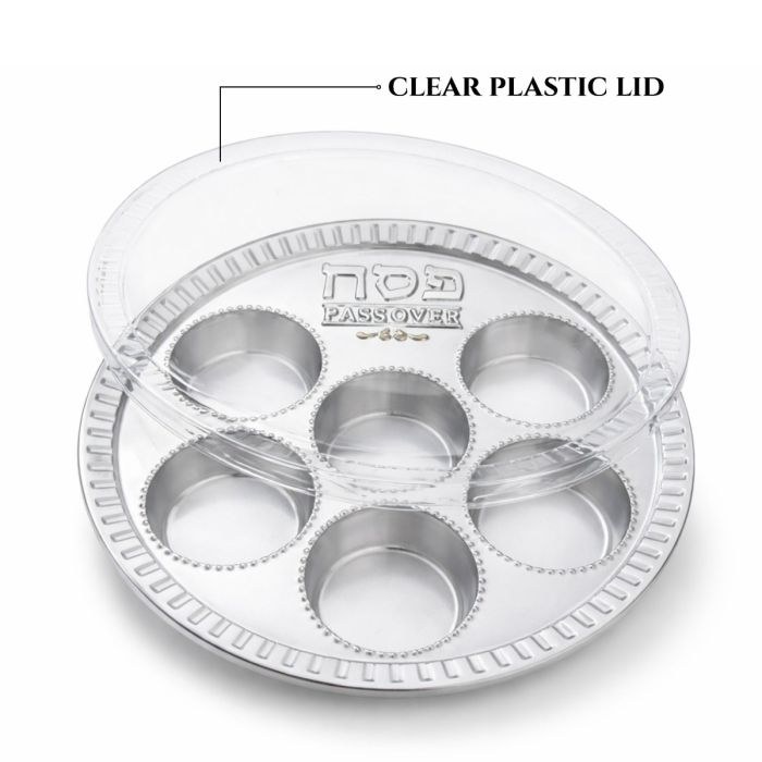 Durable Deep 3oz Pocket Traditional Silver-Like Plastic Seder Plate & Lid