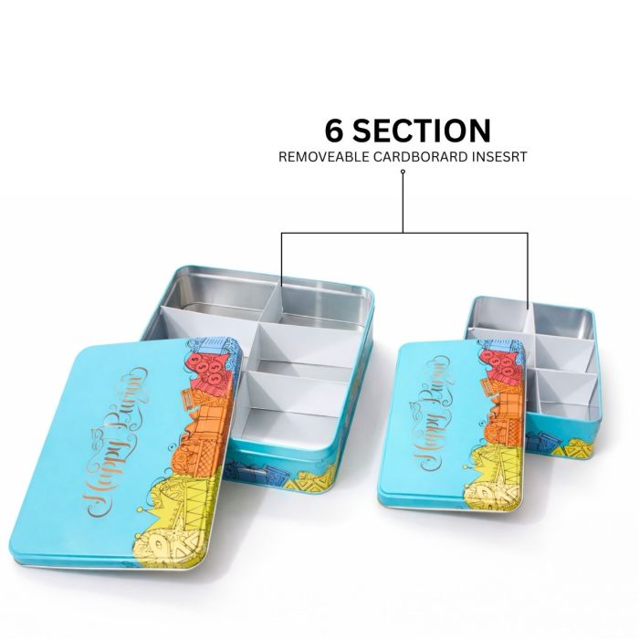 • Small: Holds up to 6 small goodie packs or can be directly filled with treats. You can easily remove the cardboard dividers to customize the space as needed.