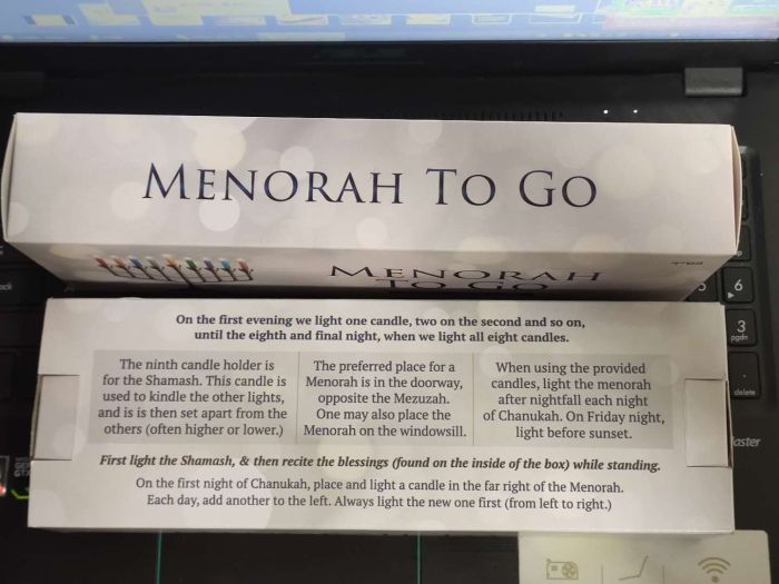 The Boxes are printed with instructions for lighting the menorah as well as a short summary of the Miracle of Chanukah.