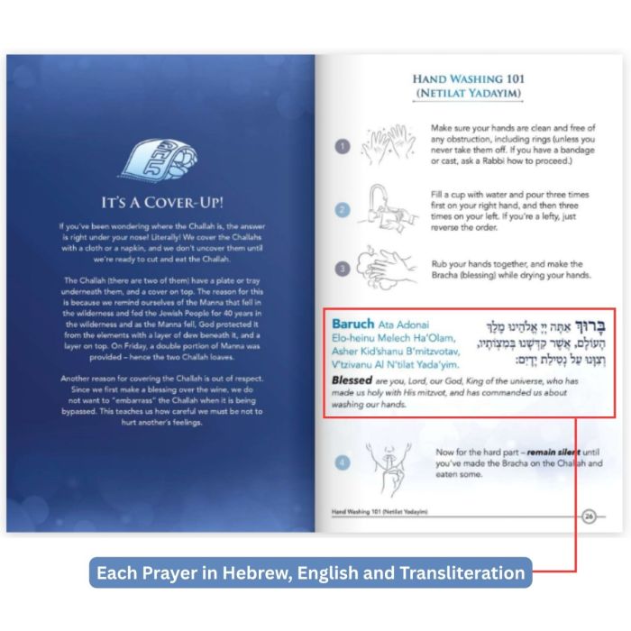 Clear Explanations of every tradition (why we cover the challah, braid it, use salt, etc.)