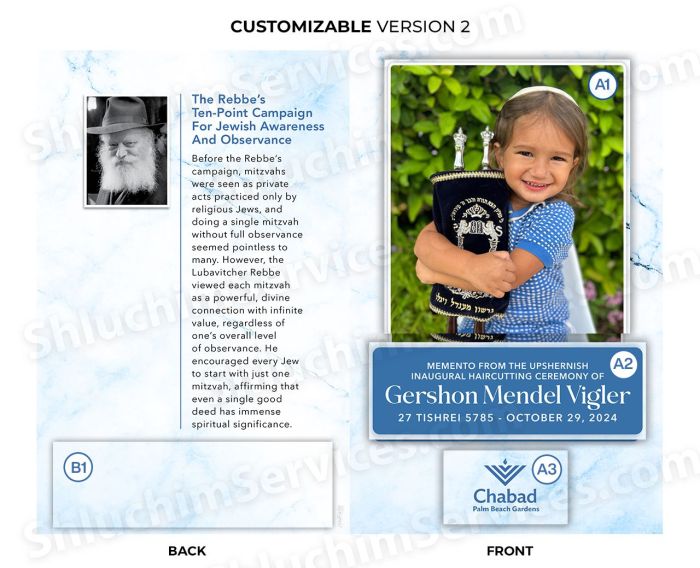 Ideal for Chabad Houses, schools, events, or milestone celebrations.