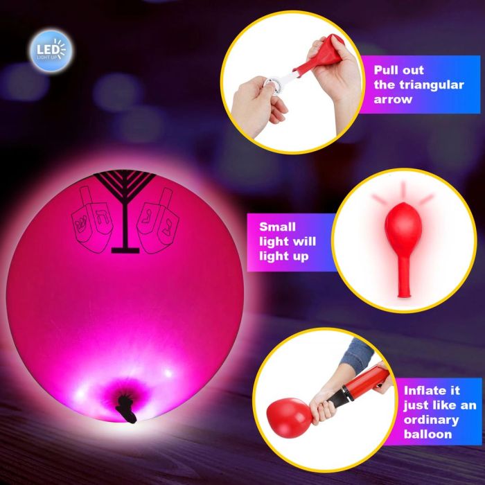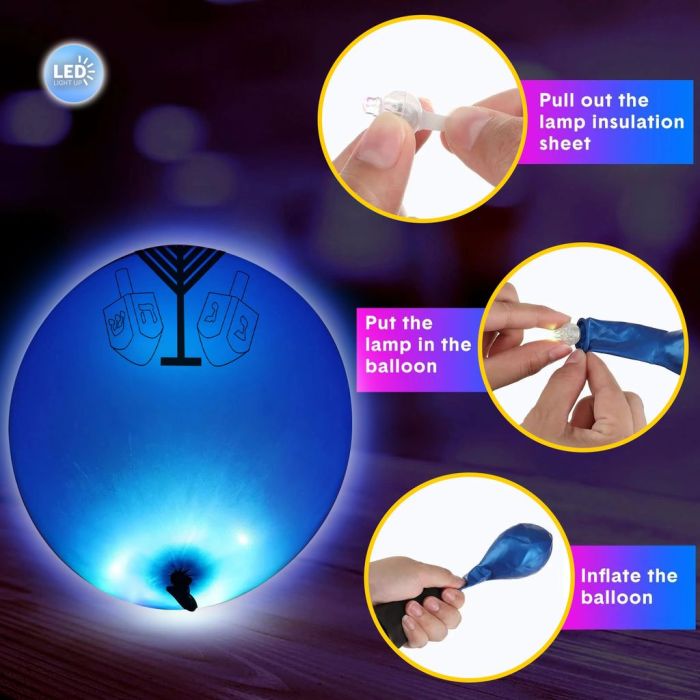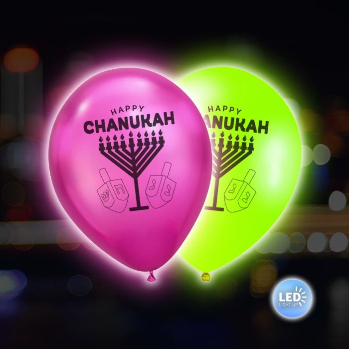 Light-Up Chanukah Balloons - Menorah & Dreidel Designs for Jewish Festivals