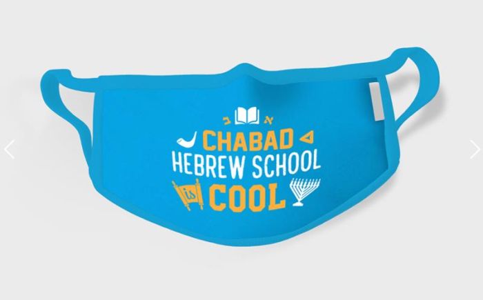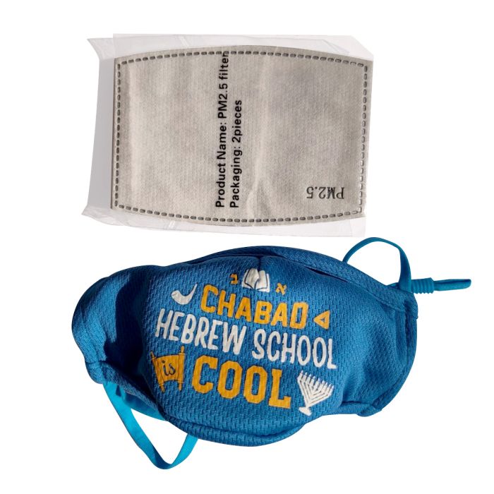 Kids & Adults Blue 3-Ply Cotton + Filter Chabad Hebrew School Mask -