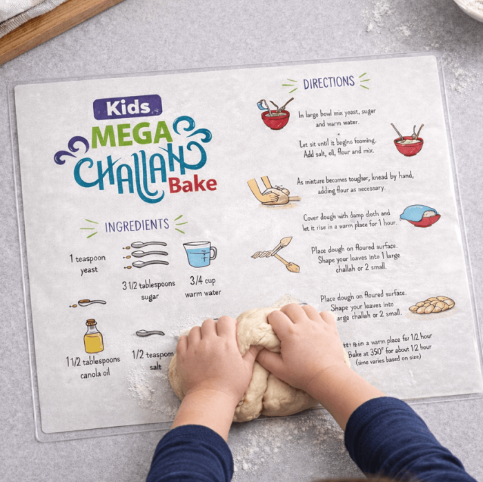 Kids Challah Bake Laminated Mat w/ Recipe - Yields 1 Challah