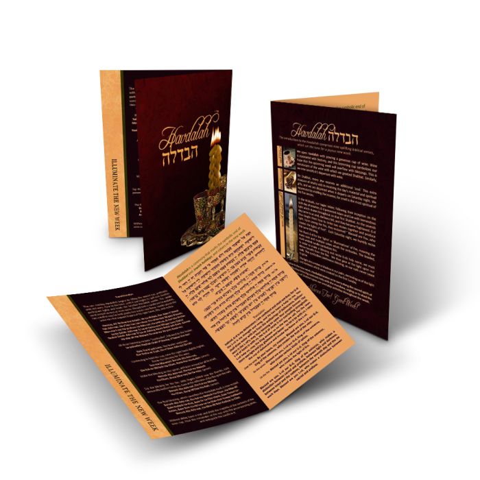 Also has easy to understand havdalah instructions. Reverse side has ritual's meaning as well as what each item is for.