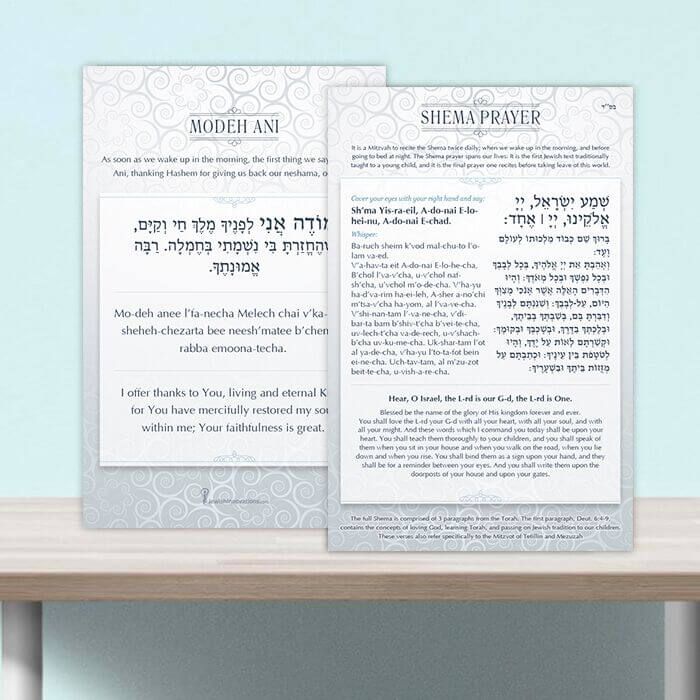 Laminated Silver Shema & Modeh Ani Card