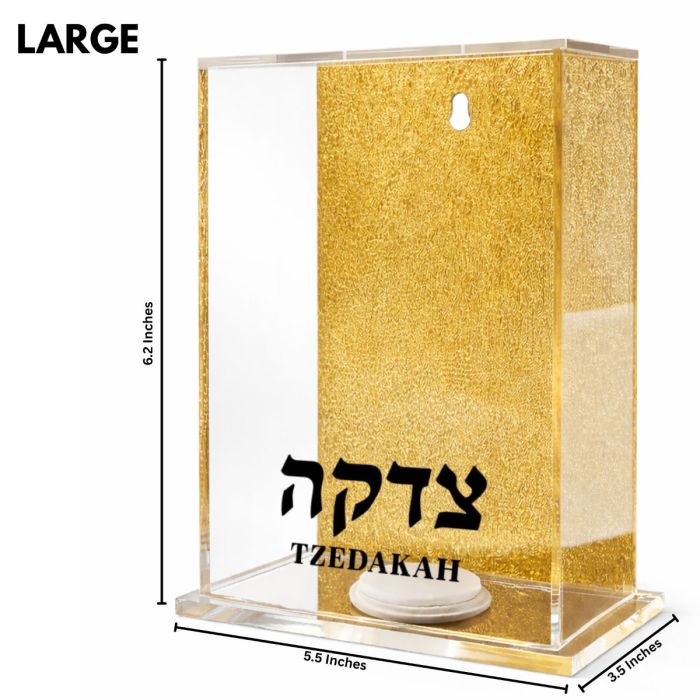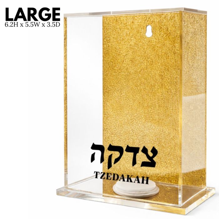 Lucite Wall-Hanging or Free Standing Larger Gold Acrylic Charity Box 6.2H x 3.5W x 5.5L - Comes Individually Packed in a Clear PVC Box
