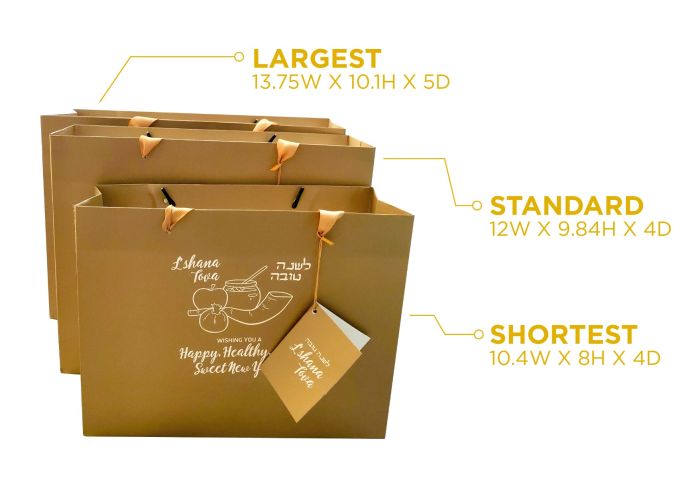 Largest Gold Shana Tova Bag & Gift Card 13.75W x 10.1H x 5D
