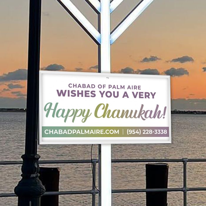 Enhance your public outdoor display Menorah with our Light Up Menorah Sign, designed to make a bold statement in front of your Chabad House or any community location. This sign securely connects to your LED Menorah, providing an eye-catching way to share your message with the world.