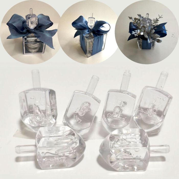 • 1 Clear lucite-look dreidel (no assembly required)