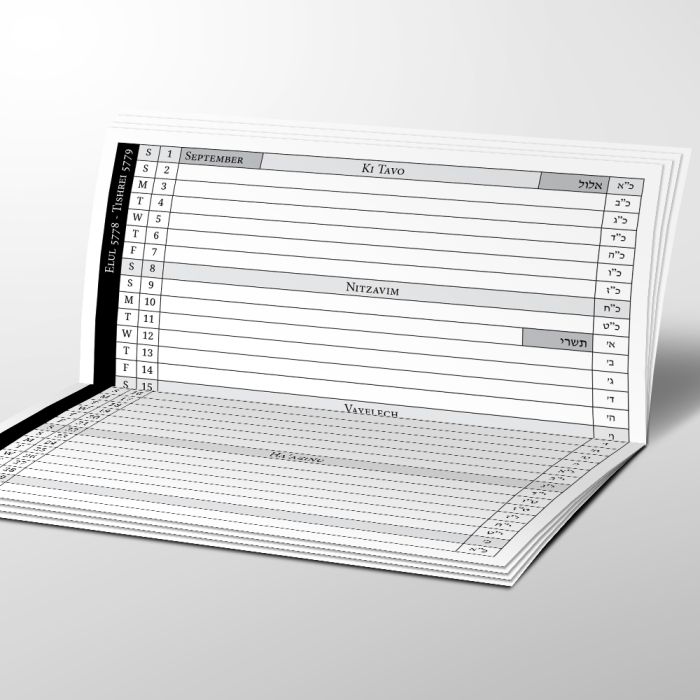 Folded to the size of a checkbook, 13 months, with your local zmanim (or without if you'd rather). The front would have your chabad house info (or whatever else you'd like, sponsor info), and the back would have an Index of Jewish dates. The two first pages would be yours to customize (ads..). and then additional pages upon request.