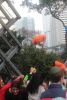 Shluchim typically use a helicopter, cherry picker, fire truck, or balcony to drop gelt and parachute toys onto the ground.