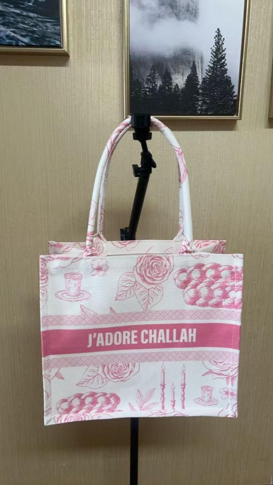 Pink - J'adore Challah Canvas Tote Bag - Ships from CA