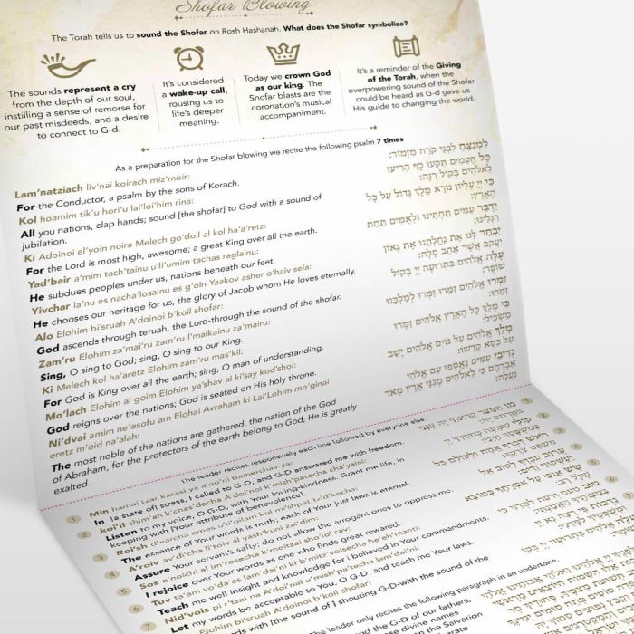 Make the mitzvah meaningful and accessible with our professionally designed Shofar Blowing Companion, created for easy use by children, beginners, and baalei tokeah alike.
