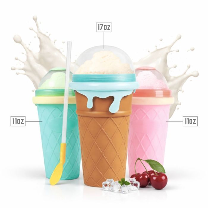 Simply freeze the cup, add milk, sugar, and your favorite flavoring, then squeeze to create a delicious frozen treat.