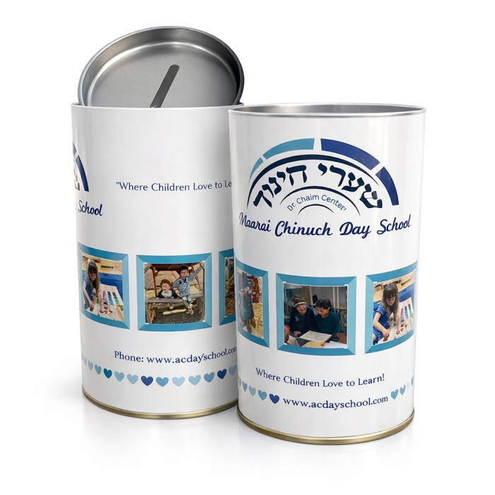 ● Custom Pushka / Tzedakah Box – Personalized charity box for fundraising and donations.