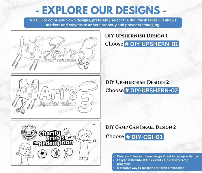 At Shluchim Services, we take pride in our quality and craftsmanship. For rush orders, items are hand-labeled with care. While we aim for perfection, minor variations may occur—these are signs of the handmade effort required to meet tight deadlines. Thank you for understanding!