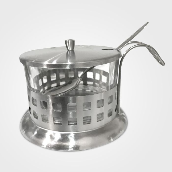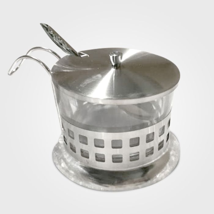 ● Elegant Design: Stainless steel honey pot with matching lid and spoon.