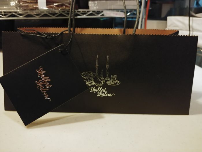 Great for delivering Challah, Chicken Soup, Neshek and the list goes on! Black bags with silver foil printing!