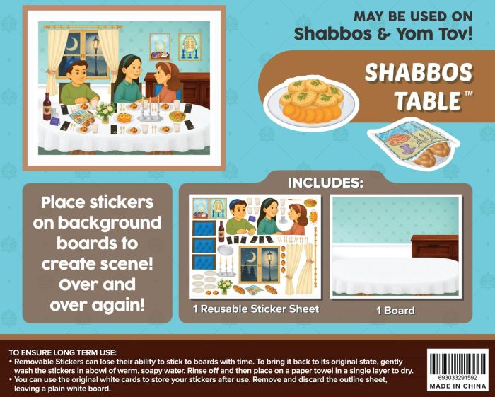 NEW!! Shabbos Table Reusable Sticker Scene 8.5 x 11 - Allowed on Shabbos and Yom Tov!