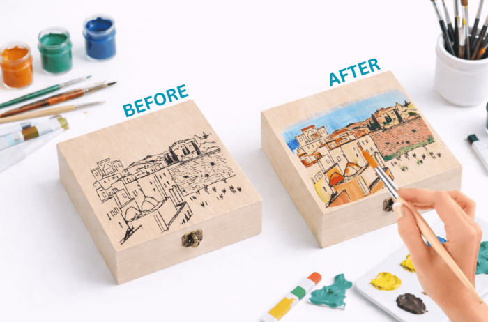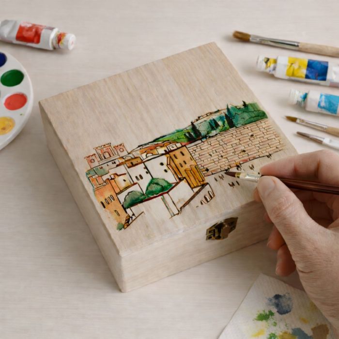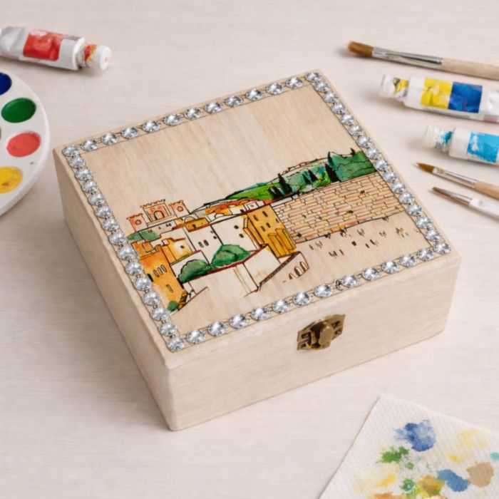 Small 4 Section Jerusalem Art Wooden Tea Box - Color & Decorate Your Own