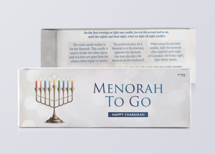 The Boxes are printed with instructions for lighting the menorah as well as a short summary of the Miracle of Chanukah.
