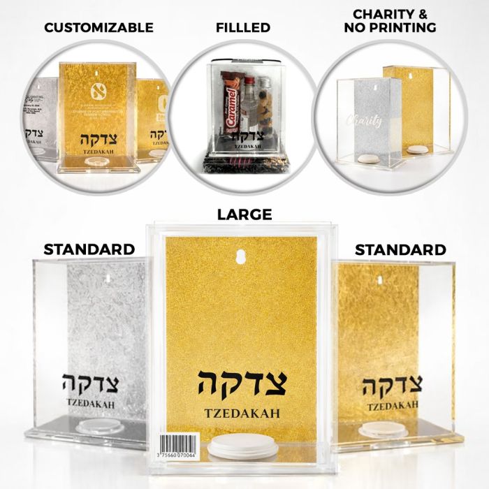 Lucite Wall-Hanging or Free Standing Acrylic Tzedakah Box - Smaller/Larger (Engravable)